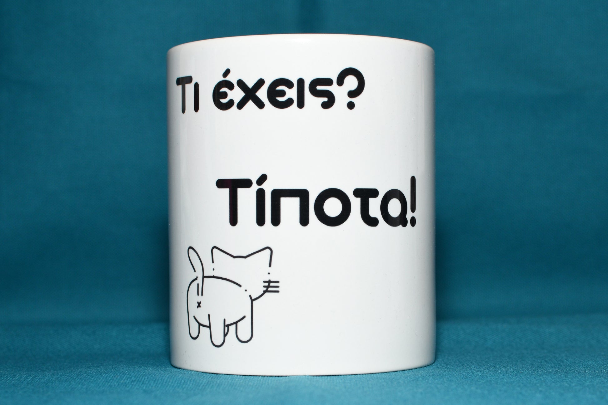 Η πιο ειλικρινής απάντηση σε μια απλή ερώτηση! Αυτή η κούπα λέει αυτό που όλοι σκεφτόμαστε: «Τι έχεις; – Τίποτα!» με μια γάτα που ξεκάθαρα… κάτι έχει! Ιδανική για πρωινά που δεν έχεις όρεξη να μιλήσεις (ούτε καν στον καφέ σου).