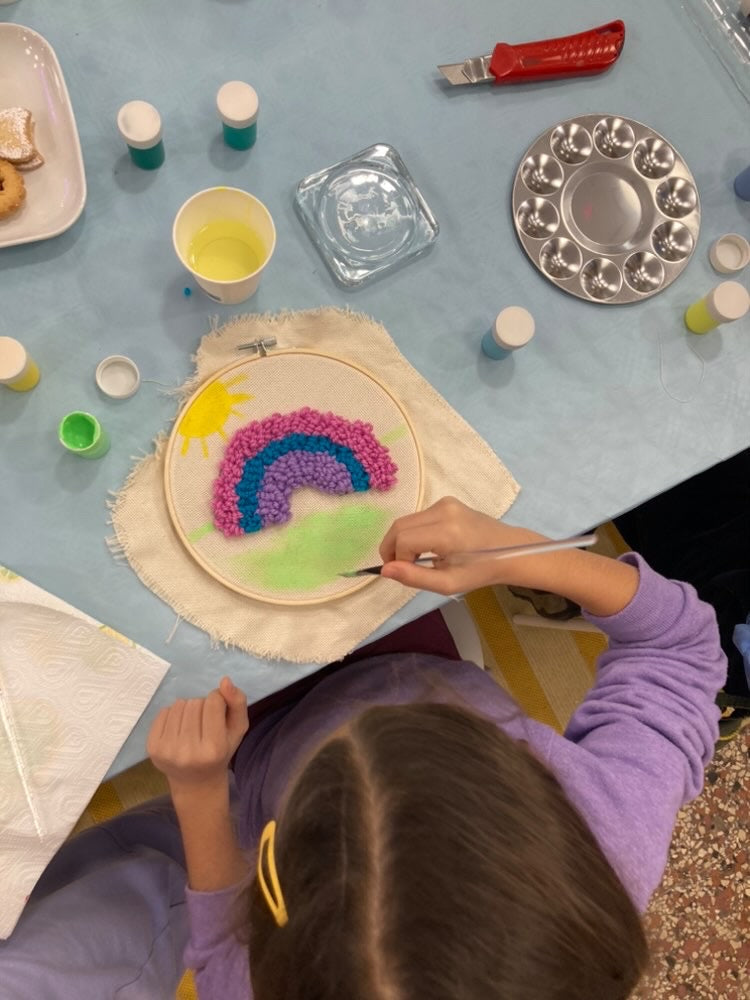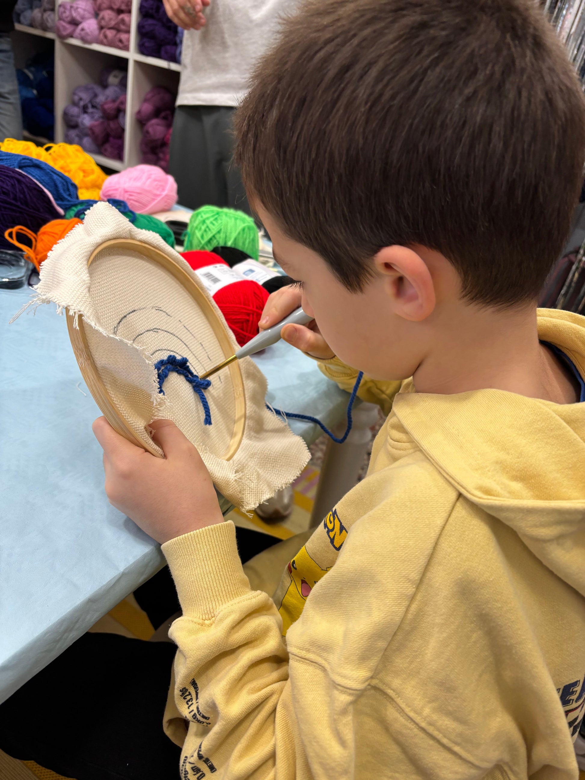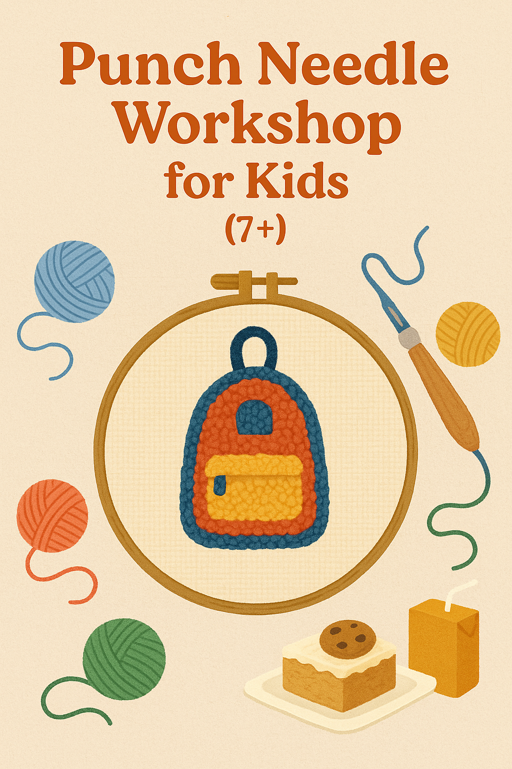 Τα παιδιά θα γνωρίσουν την τεχνική του punch needle και θα δημιουργήσουν το δικό τους μοναδικό μπρελόκ, ιδανικό για κρεμαστό στο σακίδιο ή τα κλειδιά τους.