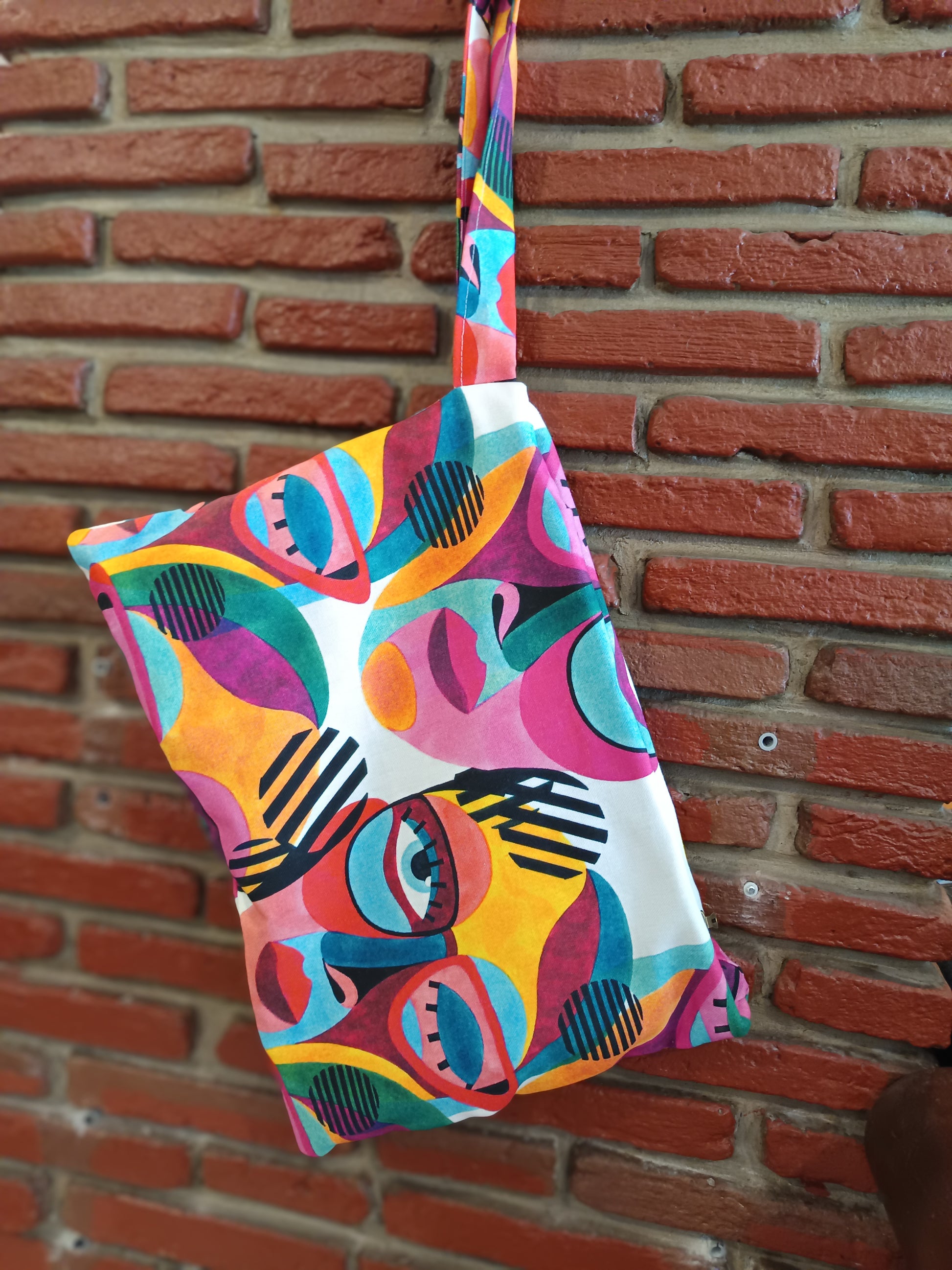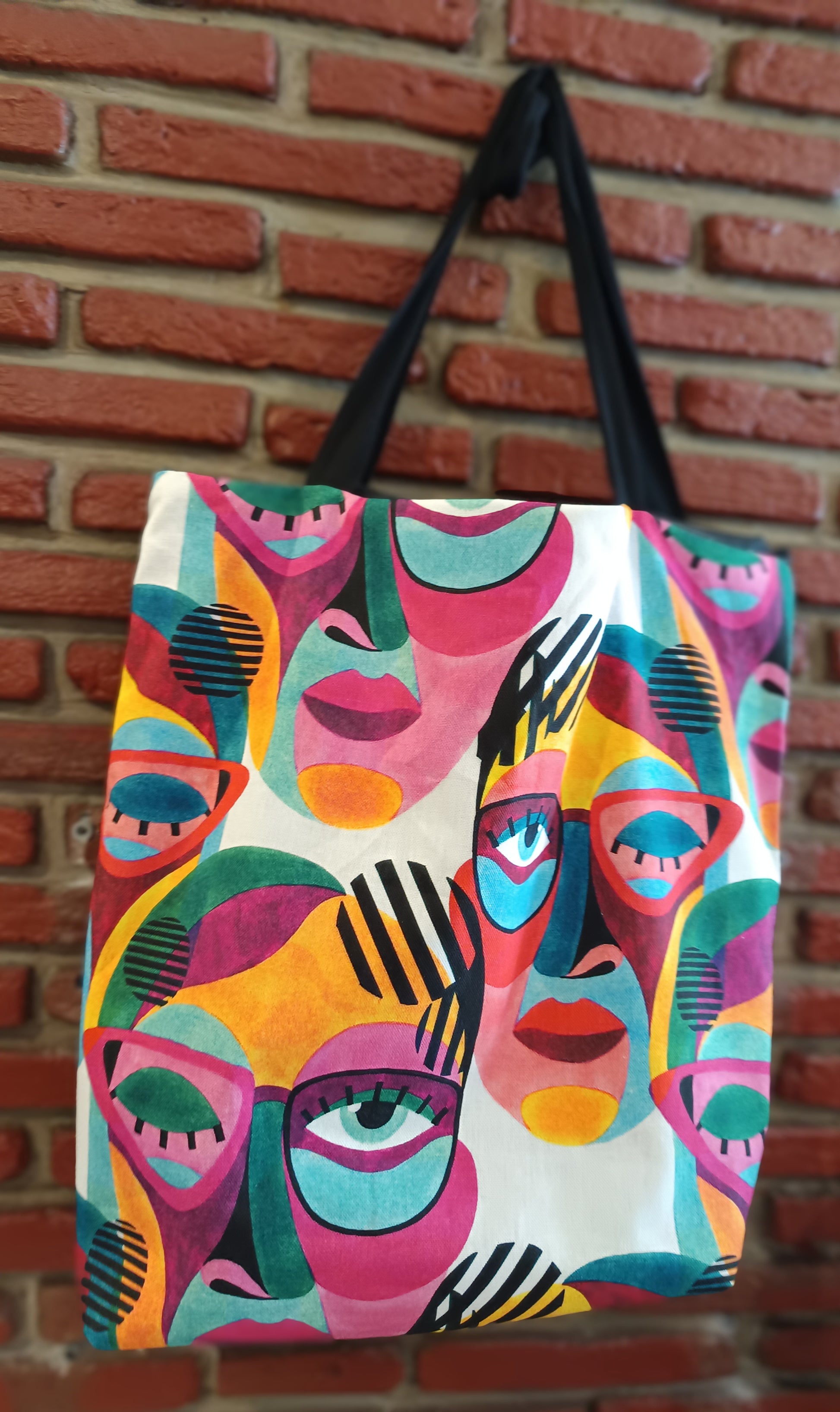 Ένα statement σετ που τραβάει τα βλέμματα! Το “Face It” περιλαμβάνει μία μεγάλη tote bag και μία μικρότερη τσάντα χειρός, και οι δύο φτιαγμένες από 100% βαμβακερό ύφασμα με έντονα, αφηρημένα πρόσωπα και pop χρώματα.