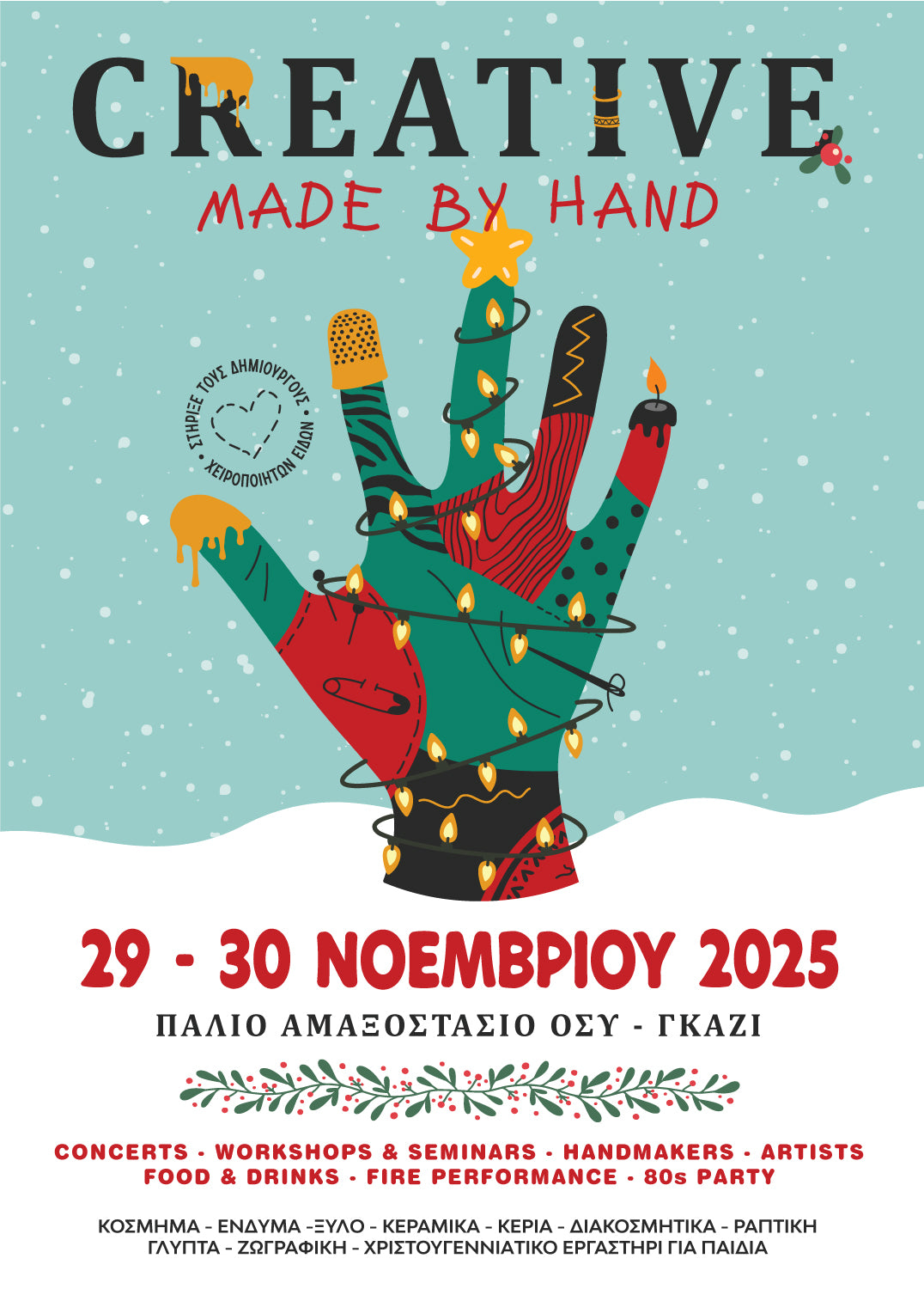 Το "Creative Made by Hand" επιστρέφει στις 29-30 Νοεμβρίου 2025, και σας προσκαλούμε να γίνετε μέρος αυτής της μοναδικής γιορτής της χειροποίητης δημιουργίας!