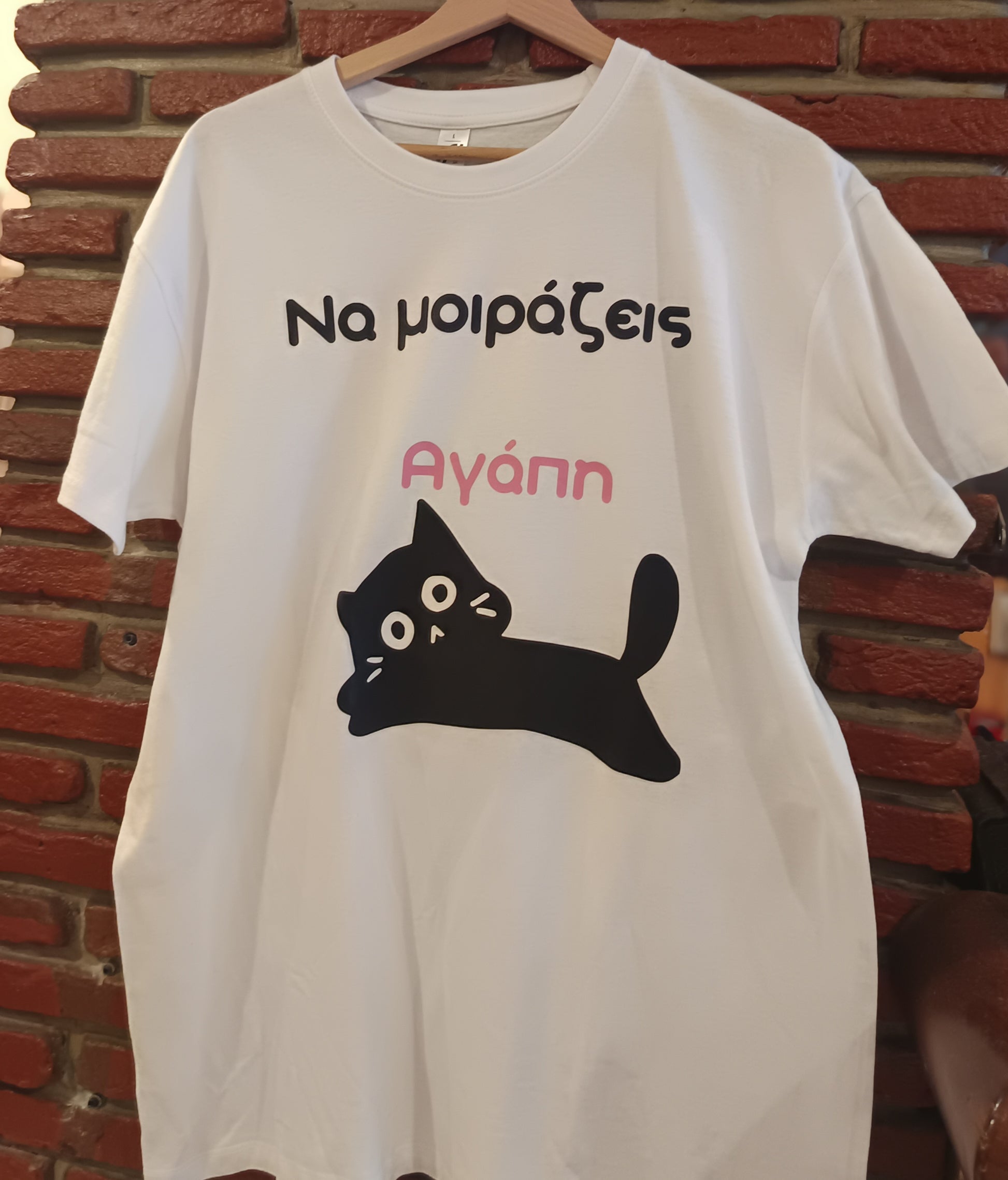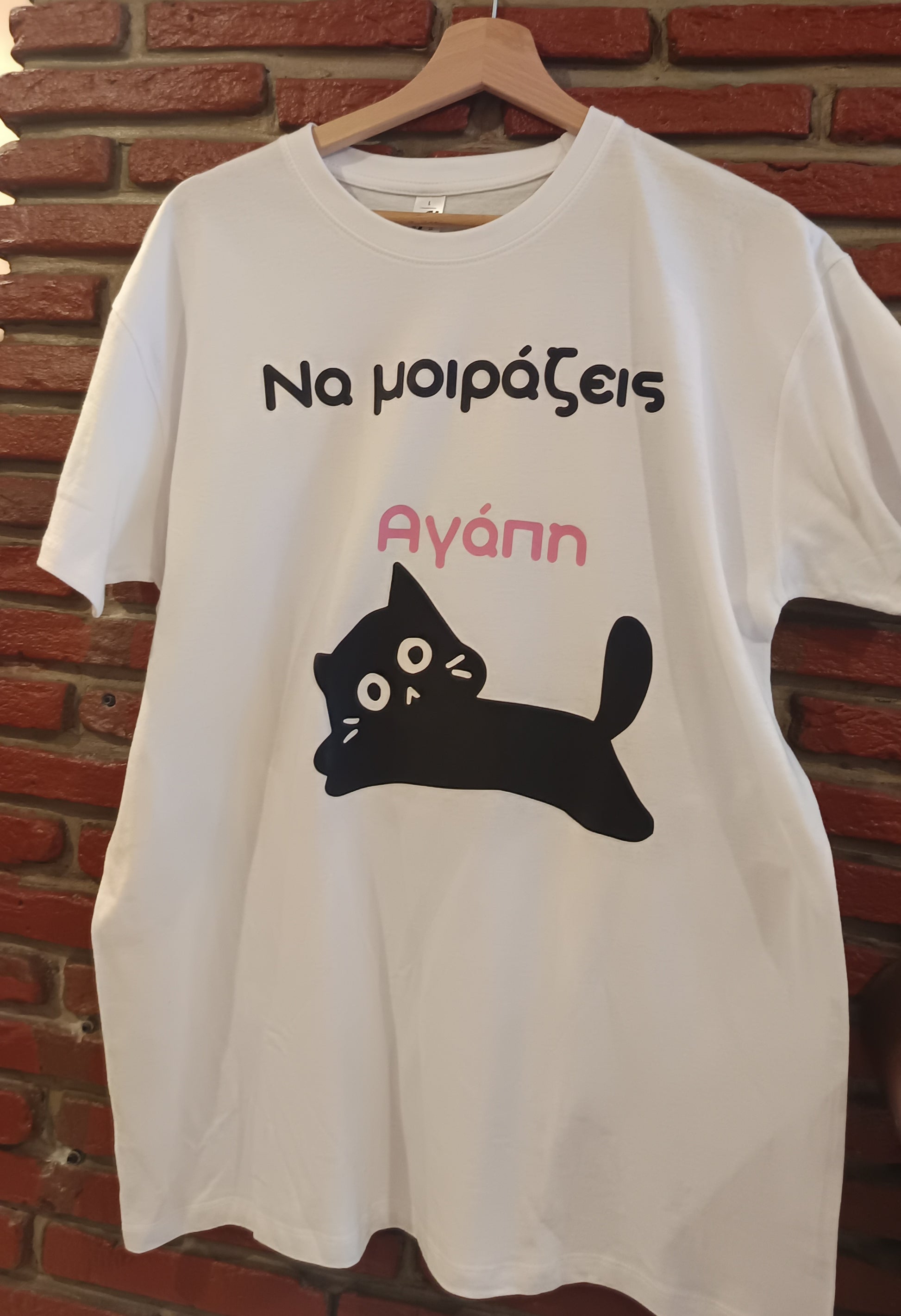 🤍 T-shirt "Να μοιράζεις αγάπη" με γάτα
